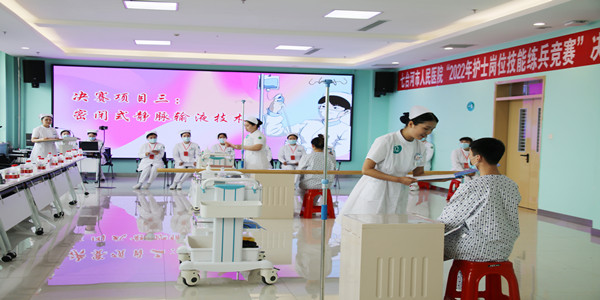 为强化护理岗位技能,提高护理人员在疫情防控、急诊急救、护理基本功等方面的护理技能,进一步深化优质护理服务,4月19日,市人民医院护理部和工会联合开展“2022年护士岗位技能练兵竞赛”决赛活动。市卫健委副主任杨静、副调研员叶琳、医政科科长胡铭,市总工会劳动和经济工作部部长殷晓梅,市人民医院领导班子成员出席活动。