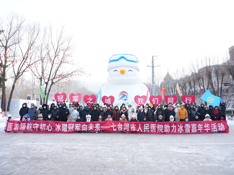 此次活动在“医者领航守初心、冰耀冠军向未来”“我的城我代言”“人民医院为人民”等响亮的口号声中正式拉开帷幕。在巨型“冠军萌宝”大雪人前,队员们手持院旗和活动标语牌,排列成整齐方阵打卡留念。